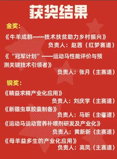 获奖项目负责人赛后感言:今年,我们的技术创新服务团队,是由9名分别来自星空平台app地址与经济贸易学院的博士、硕士、本科生组成。将所学知识和先进的现代繁殖技术落地应用,完成品种改良,扩大养殖规模,增加就业岗位和农牧民增产增收的工作。在当今草场不足、地方品种退化的背景下,快速提高品种母羊的繁殖效率,实现生态效益和社会经济效益的双赢,助力乡村振兴。能够获得第六届中国国际“互联网+”大学生创新创业大赛新疆赛区选拔赛青年红色筑梦之旅赛道公益组的金奖,除了幸运,还离不开指导老师阿布力孜·吾斯曼教授的正确引领,离不开学校、学院对项目的支持,离不开团队每一位成员的汗水与努力。取得的成绩是昨天的、快乐是短暂的,团队依旧会为了明天的国赛,继续对项目打磨,争取在国赛赛场上为团队争气、为学院争光、为母校争荣。