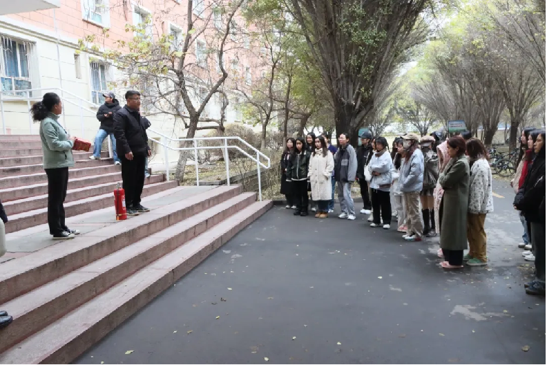 演练结束后,学院辅导员艾孜买提·许合热提老师进行了一场精彩的校园消防安全知识宣讲。艾孜买提·许合热提老师着重强调了宿舍消防安全和日常消防常识的重要性,通过生动案例阐述了火灾的严重危害和不可预测性。同时,详细讲解了疏散逃生技巧、火灾应急处理及预防措施,还亲自示范了消防器材的正确使用方法,进一步增强了师生们的消防安全意识。